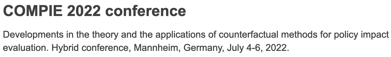 Session 22: Microeconometrics 2 July 6, 2022 11:45 to 13:00 Location: Room B |